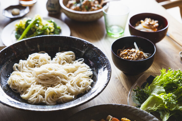 特産の「半田そうめん」の製造販売を行っています。2020年に「八千代」ブランドを継承。国産原材料100%にこだわった商品を基本とし、ISO22000国際認証や有機JAS認証を取得するなど、時代が求める衛生環境向上などに取り組んでいます。2025年、食品衛生優良施設として、美馬保健所長賞を受賞。国内でも数少ない国産原料100%にこだわった「半田そうめん八千代」や赤じゃこや和三盆糖などのこだわり原料を使用し、うま味調味料や保存料不使用の「八千代つゆ」、全国的にも大変珍しい冷凍そうめん「冷凍 半田そうめん八千代」などの「とくしま特選ブランド」認定商品に加え、半田そうめん初で唯一のオーガニック商品「オーガニック八千代」を販売する予定です。