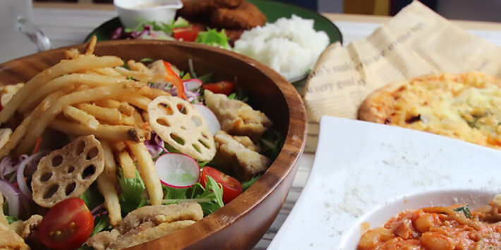 大きく切り取られた窓から小鳴門海峡を見渡しながら、当店自慢のランチ、アフタヌーンティー、ディナー(コース料理)やヴィーガン料理をぜひお楽しみください。アフタヌーンティーとディナー、ヴィーガン料理は、完全予約制、ランチは予約優先です。お電話または公式サイトの予約フォームよりご予約ください。テイクアウトもございます。